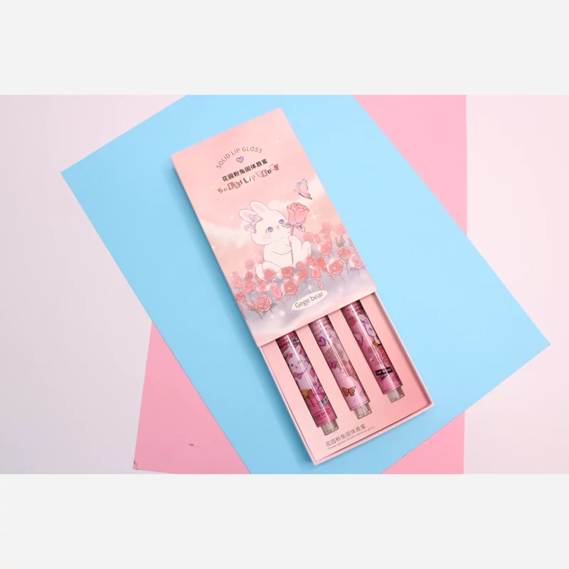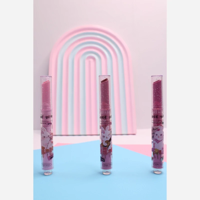 رژلب خرگوشی در سه طرح مختلف ابرسان مرطوب کننده ضد حساسیت رنگ های جذاب و کره ای براق کننده در سه طرح خرگوشی جذاب